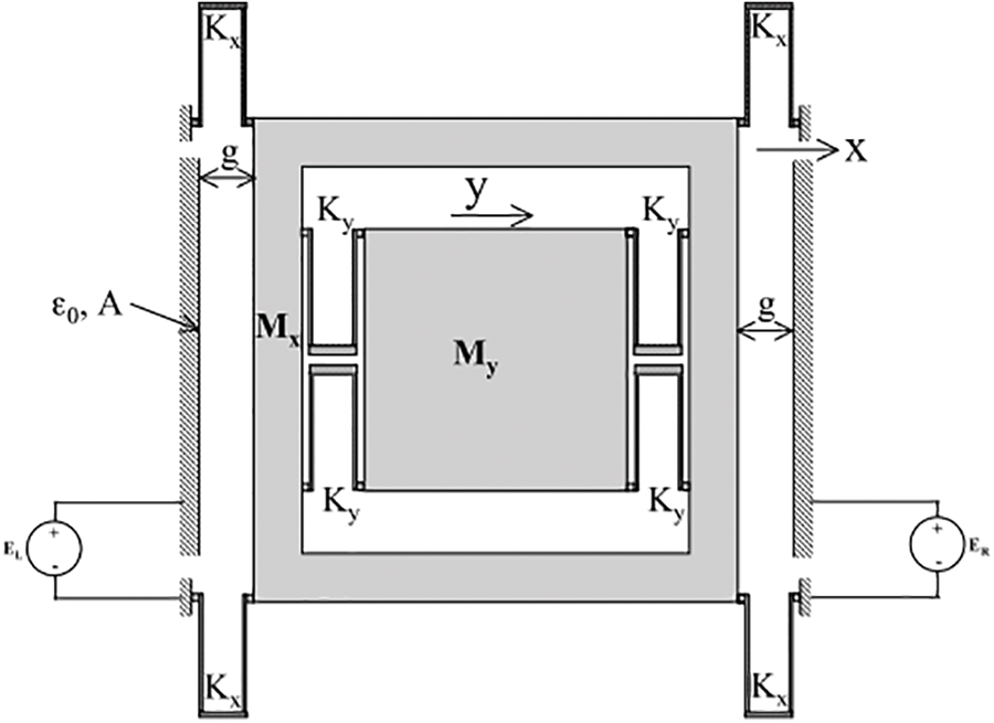 Fig. 8. Lumped-parameter model and MEMS schematic for a device with linear motion.