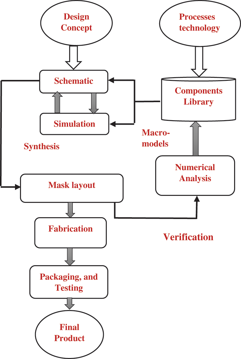On November 12–15, 1995, the National Science Foundation of the United States of America provided sponsorship for a workshop held at the California Institute of Technology in Pasadena, California, USA. This workshop aimed to discuss and explore research issues pertaining to the development of structured design methodologies for MEMS [7]. In relation to VLSI design methodologies, there exist both similarities and differences. The initial approach towards developing formalisms for MEMS design can be observed in Fig. 2.