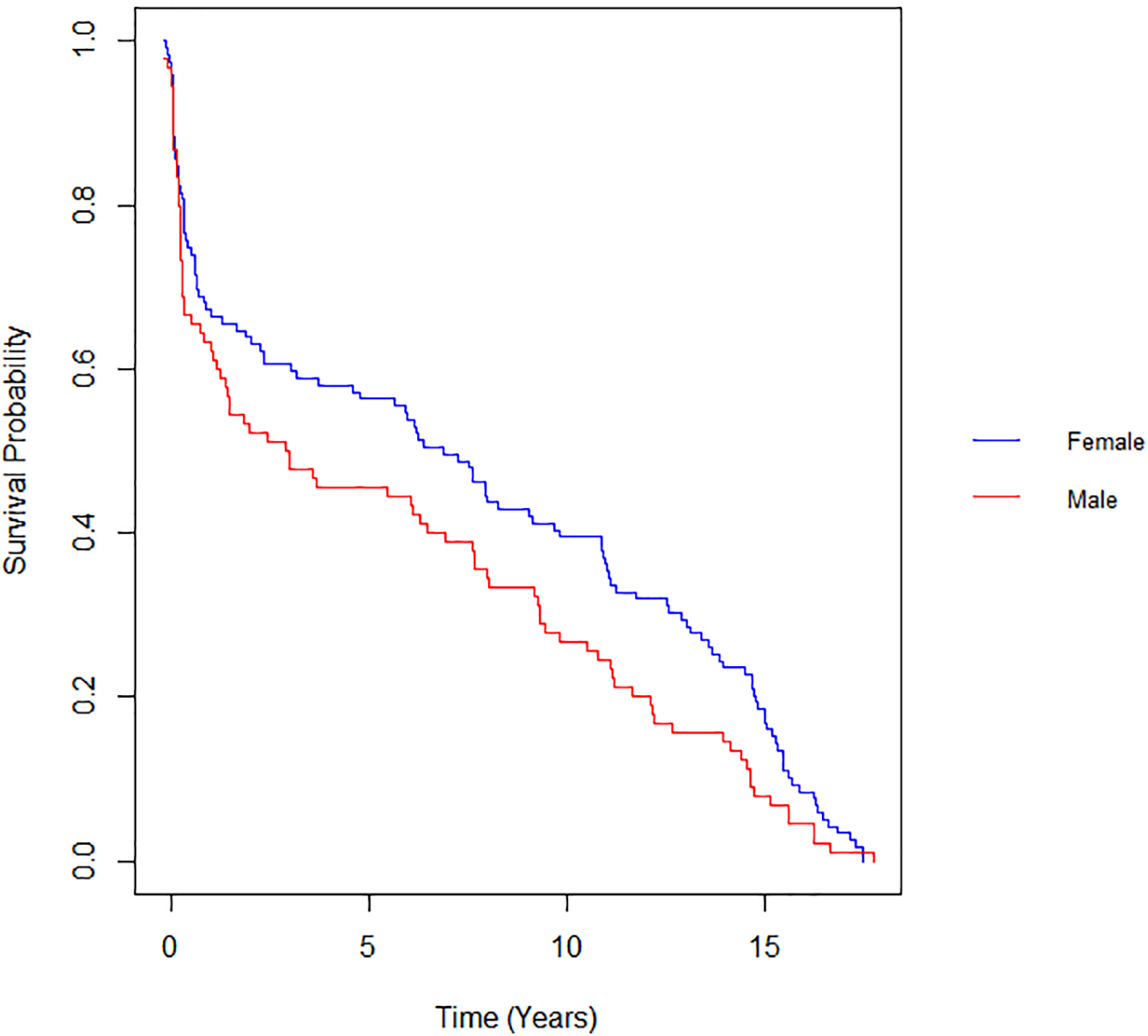 Fig. 3. Kaplan-Meier survival curves by gender.
