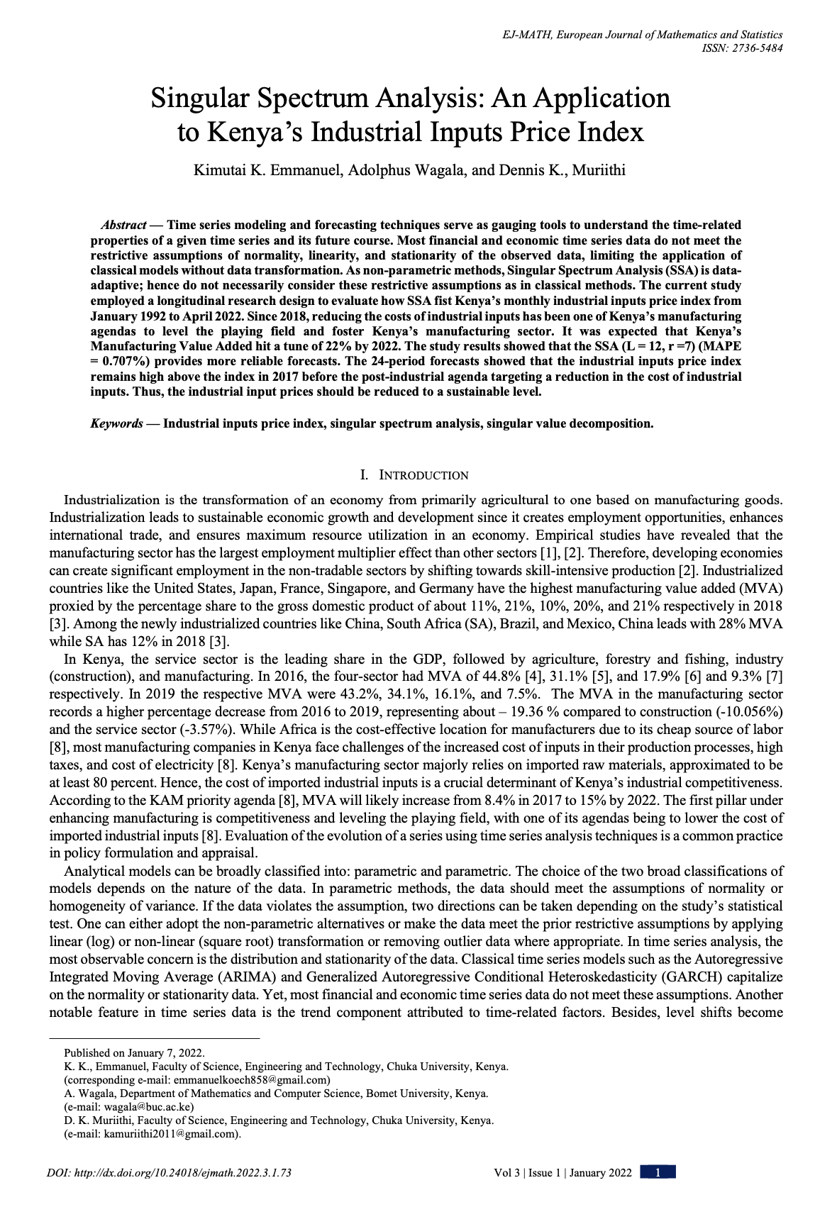 Singular Spectrum Analysis: An Application to Kenya’s Industrial Inputs Price Index