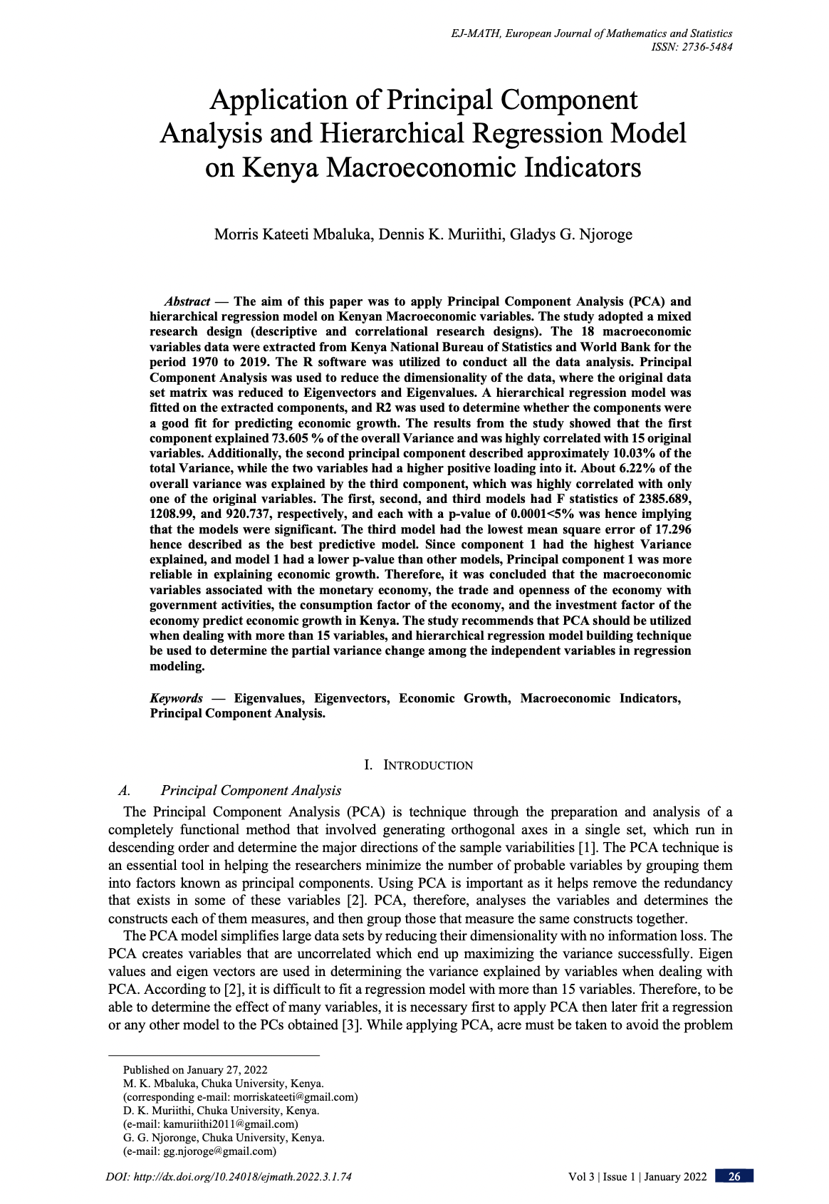 Application of Principal Component Analysis and Hierarchical Regression Model on Kenya Macroeconomic Indicators