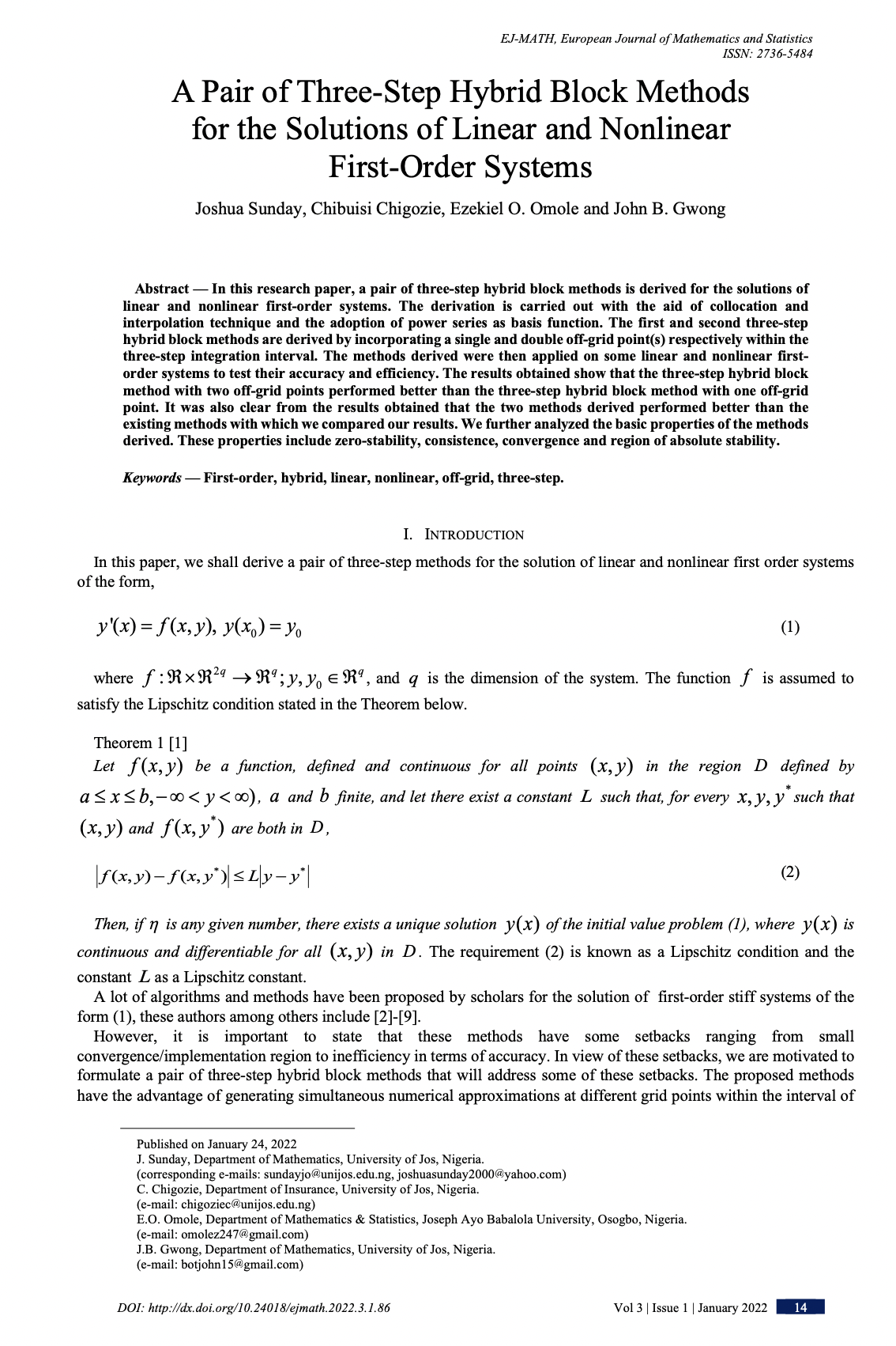 Joshua Sunday, Chibuisi Chigozie, Ezekiel O. Omole, John B. Gwong