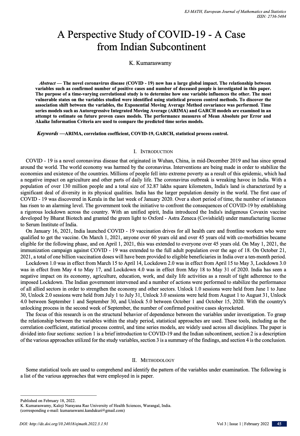 A Perspective Study of COVID-19 - A Case from Indian Subcontinent