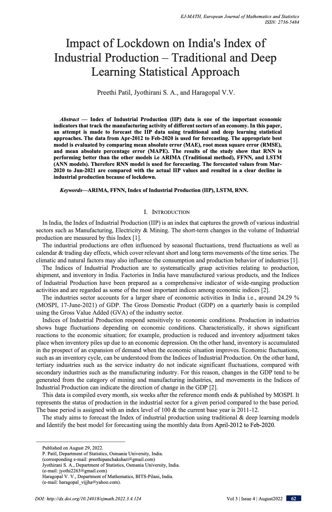 Impact of Lockdown on India's Index of Industrial Production – Traditional and Deep Learning Statistical Approach