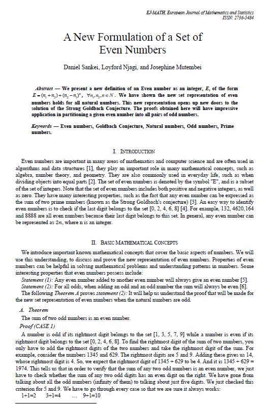 A New Formulation of a Set of Even Numbers